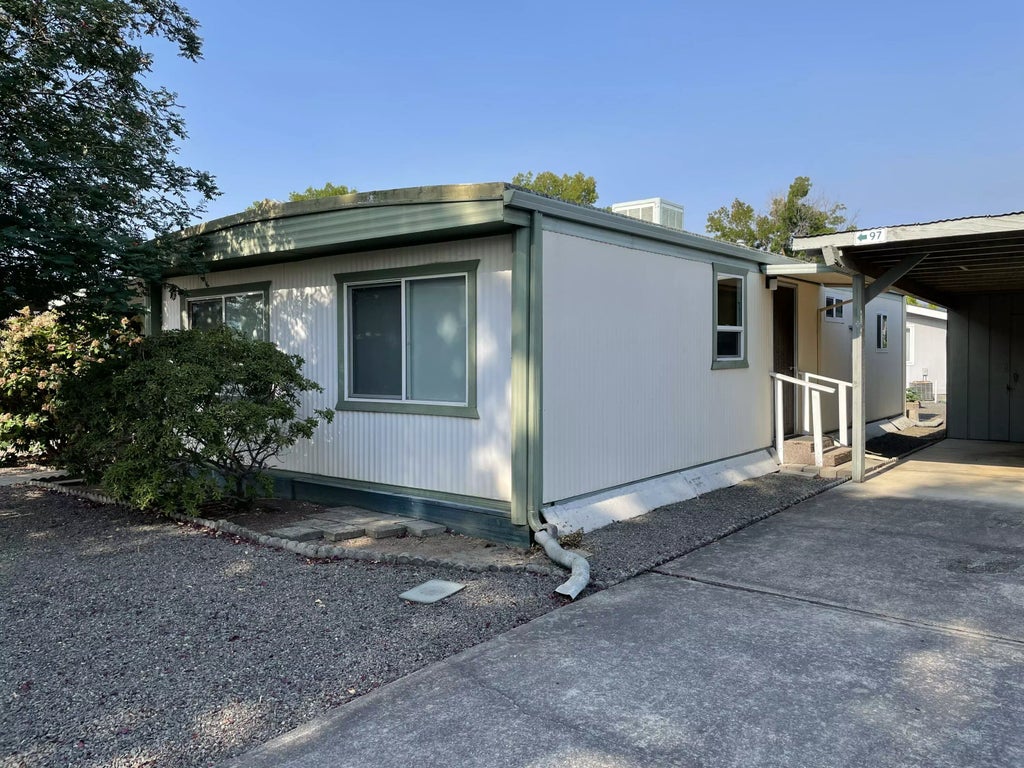 The Rogue Valley's desired 55+ Park has a new listing sure to please. Unique double wide home offering lots of open space and just 2 large bedrooms and one large full bathroom. The comfortable living room has lots of windows bringing in the sunshine. The kitchen has a 5 burner gas stove and lots of storage space, all the appliances stay including the newer washer and dryer. Simple easy care rock landscaping and a covered patio for outside relaxation and entertaining. Hurry to see this comfortable home, as it will go quickly.