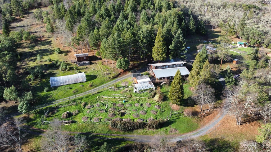 Here is your chance to secure beautiful acreage in the Grants Pass country side. The home is tucked at the end of the drive way for lots of privacy. Multiple improvements have been made to the property including several well-built cabins for guests. A new 9x6 cedar wood fire sauna. 60 gallon per minute well with dual water softeners! The home was remodeled nicely! Beautiful views of the mountains and valleys from your front porch. Drivable trails that take you all over the large acreage property with many different paths to walk. Several green houses perfect for off the grid living. Come see it today before its gone!